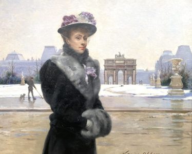 The painting “Lady in Paris on a Winter Day” stands as a testament to Abbéma’s unparalleled talent and distinctive artistic style.
