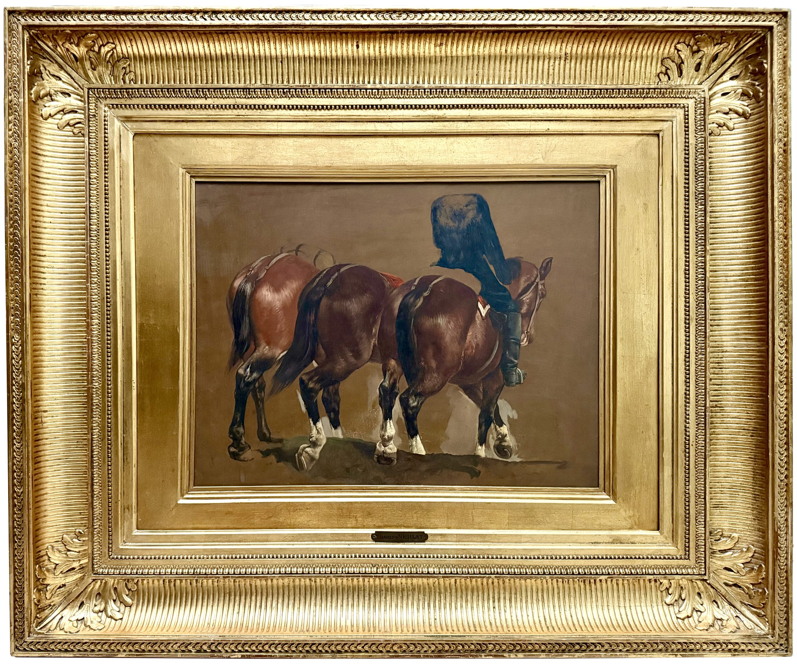 During his lifetime, Verlat was widely recognized as an important animal painter, admired for his ability to render animals with vitality, anatomical accuracy, and psychological presence. One of his early animal paintings was acquired by the celebrated English animal painter Edwin Landseer, a testament to Verlat’s reputation in this field. Among his most renowned works is The Defense of the Herd (1878, Royal Museum of Fine Arts Antwerp), painted during his residence in Palestine. Executed in the muted palette characteristic of that period, the work displays a dynamic interaction of animals reminiscent of earlier Flemish animaliers such as Frans Snyders.